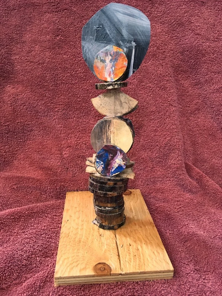 Scupltures made with wood, collage and polyeurethane. There are two sides to each sculpture and each pair of photos is one sculpture. Please reach out to seankratzert@gmail.com for inquiries.
